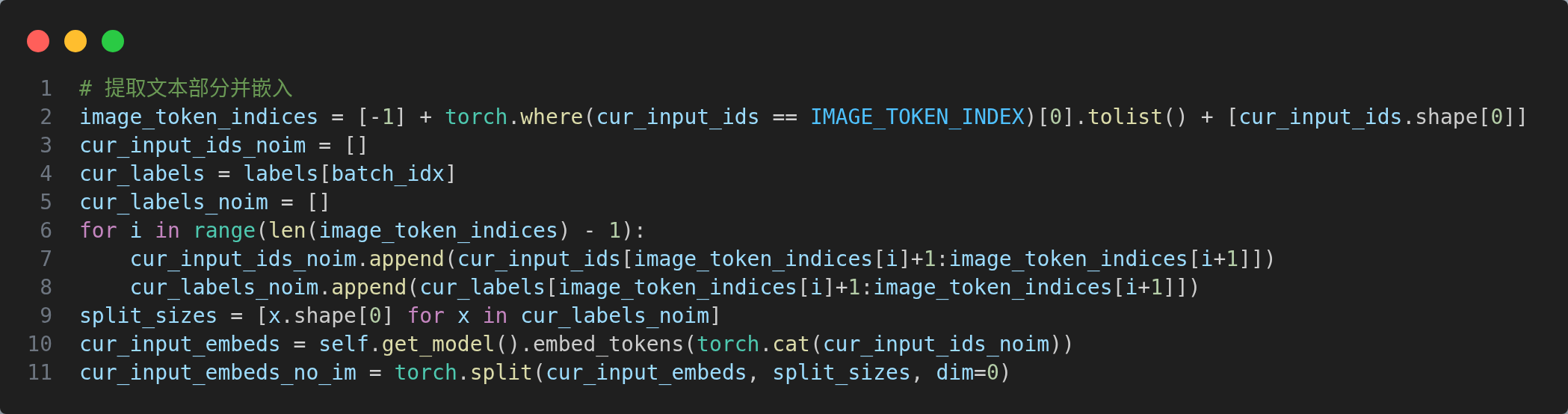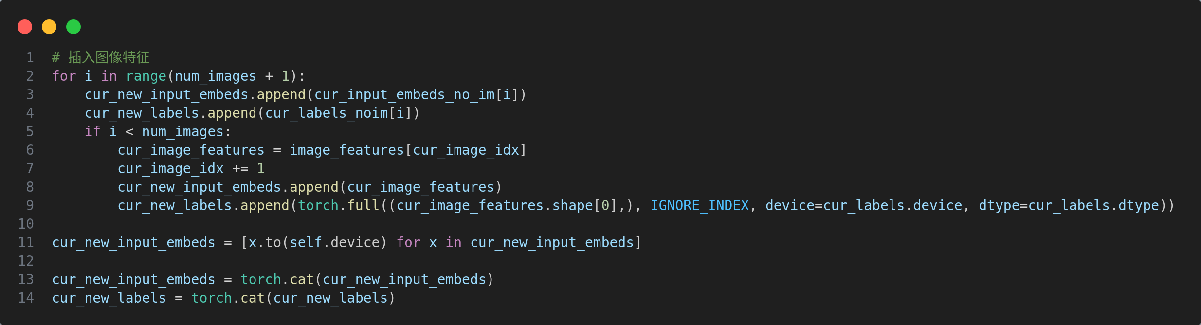 该函数用于将输入文本和图像进行拼接,并生成对应的标签,是视觉语言融合的核心函数,